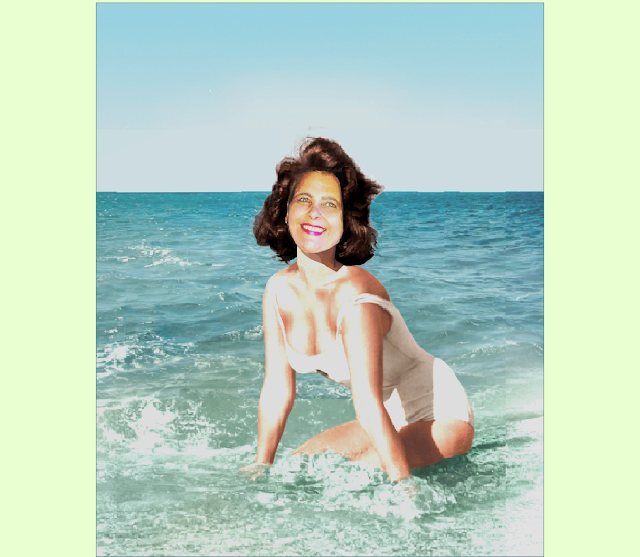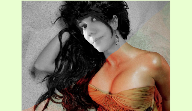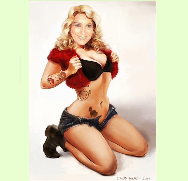 Eu queria montar o rosto da Regiane Lavinsky no corpo da Louise Brooks, porém não achei nenhuma imagem da Lulu num ângulo compatível com alguma foto da minha amiga. Então esbarrei nesta da Penelope Cruz (abaixo), num ângulo perfeito para montar com esta outra da Regiane. A opção pelo rosto em P&B foi para aproximá-la da grande diva do cinema mudo. Mas eu queria mesmo era poder usar a graça delicada dos seios de Louise. Mil vezes uma maminha de alcatra que um mamão de silicone, né não?